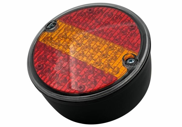 IP69K, ADR **mit D-Zeichen: Zugelassen als Doppel-Schlussleuchte** Standlicht/Bremslicht: Halbe Leuchte leuchtet **mit D-Zeichen: Zulassung als Doppelleuchte**, ø 140 mm, IP69K, ADR/GGVS-geprüft, mit 7-Pol-AMP/TYCO-Stecker