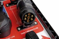 Für Anhänger und Zugfahrzeuge mit 7, 13 & 15 Pol sowie ABS/EBS. Der Wireless ControlCase dient zur Diagnose/Prüfung aller Anhänger-Steckdosen und Stecker (7/13 pol.) im PKW – (12 Volt) und LKW – Bereich (24 Volt). Die absolute Neuheit ist die kabellose Übertragung/Überprüfung des Fahrzeuges und Anhänger durch Funk. Ein weiteres Highlight auf der Anhängerseite ist, dass ab sofort die Überprüfung der Anschluss/Belegung der Steckerseite (7/13 pol.) über automatischen Prüfablauf erfolgt. Das heißt, die Anhängerbeleuchtung wird automatisch eingeschaltet und abgerufen. Die Stromversorgung erfolgt durch einen eingebauten Akku, der über ein Netzteil aufgeladen werden kann. Die Fernbedienung wird mit 3x AA-Batterien versorgt (nicht im Lieferumfang). Jetzt mit integrierter ABS/EBS-Funktionsleuchte! Prüffunktionen 12 V: - Zugfahrzeug: 7 + 13 pol Steckdosenprüfung - Anhänger: 13 pol Stecker für Beleuchtungsfunktionen Prüffunktionen 24 V: - Zugfahrzeug: 7 pol Euro-N, Euro-S, 15 pol Steckdosenprüfung - Anhänger: 7 pol Euro-N für Beleuchtung, 7 pol Euro-S für Zusatzfunktionen, 13 + 15 pol für Beleuchtung, 7 pol für ABS Stecker Kabellos mit Fernbedienung