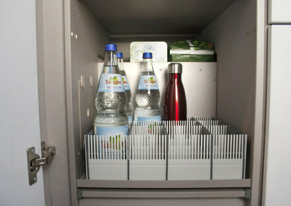 Die 8 Leisten (4x lichtgrau, 4x anthrazit) bieten einen variablen Facheinsatz und ermöglichen eine enge Rasterung mit sehr flexibler Verstellbarkeit. Die Leisten können auch gekürzt werden. Durch die neue Höhe der Stauleisten von 10 cm lassen sich nun auch hohe Gläser, Flaschen etc. sicher transportieren. Material: ABS Spritzguß