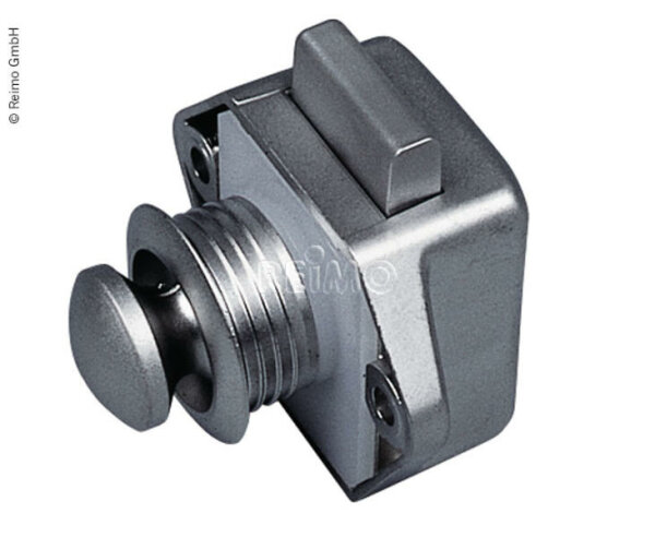 Complete set Push Lock furniture lock including strike plate. One-hand operation for small flaps and drawers. Small, round and no protruding parts. When pressed, the knob springs forward and serves as a handle.