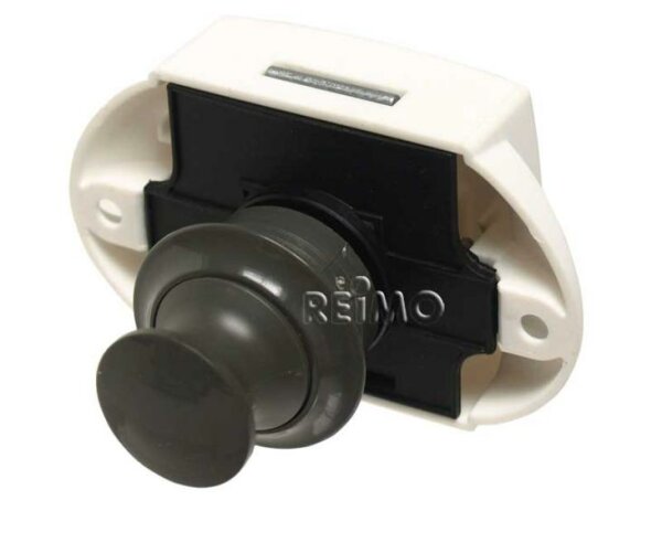 Ensemble complet de serrures de meubles Push Lock, y compris gâche. Commande à une main pour portes d'armoires et tiroirs. Petites, rondes et sans parties saillantes. Pour épaisseurs de panneaux jusqu'à 15 mm. Lorsque le bouton est enfoncé, il ressort et sert de poignée. Couleur : Gris