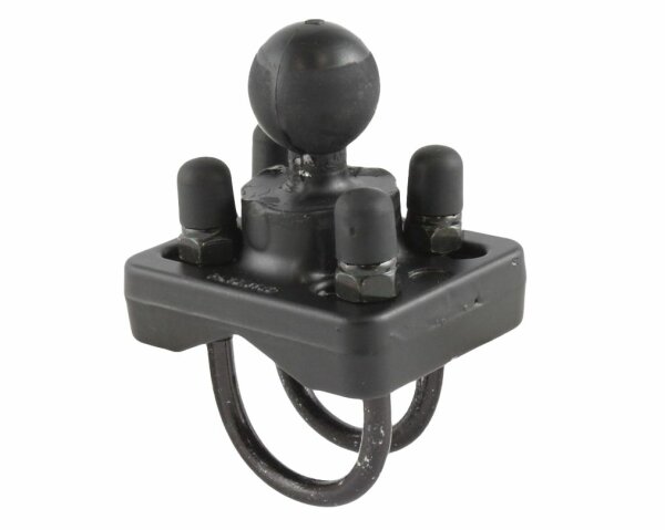 Die RAM MOUNT Doppel-Klemmschelle mit B-Kugel wird im rechten Winkel zum Rohr befestigt. Die U-Bügel sind für Durchmesser von 19.1 bis 31.75 mm geeignet. Die Grundplatte an sich ist 6.2 cm lang, 5.1 cm breit und 0.8 cm dick. Die Gewichtskapazitäten basieren auf normalen Anwendungs-Umgebungen. B-Kugel (1 Zoll bis 0.9 kg) ø 19.1 - 31.8 mm