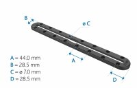 Mit dem RAM Tough-Track sind die Montagemöglichkeiten auf flachen Oberflächen für ATVs, Autos, Mähdrescher, Motorboote, Traktoren, Lastwagen und mehr nahezu unbegrenzt. Diese Schienenmontagelösung kann auf jede flache Oberfläche gebohrt werden und ist für die Verwendung mit Schrauben für eine einfache Installation ausgelegt – Hardware nicht im Lieferumfang enthalten. Der Tough-Track funktioniert mit einer Vielzahl von RAM-Track-Basen, um Geräte wie Action-Kameras, Angelruten, Telefone und Tablets anzubringen. zur einfachen Befestigung von Basisplatten