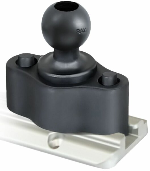 Der RAM Mounts Track Ball aus Hochfestigkeits-Verbundstoff ist mit einem T-Slot versehen und eignet sich ideal für die Einschübe bei den Tough-Track-Schienen. Der T-Slot wird in die entsprechende Schiene eingesetzt und dabei die beiden Knöpfe gedrückt. Sobald die gewünschte Position erreicht ist, wird der Track-Ball durch das Loslassen der beiden Knöpfe fixiert. Zum Lösen der Kugel einfach wieder die beiden Knöpfe drücken. Somit kann diese Befestigungsart auch sehr gut als Wechselsystem eingesetzt werden. Die B-Kugel (1 Zoll) bietet Zugang zu diversen Befestigungslösungen. mit Quick-Release-System