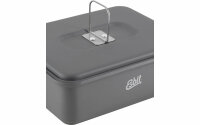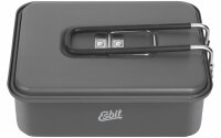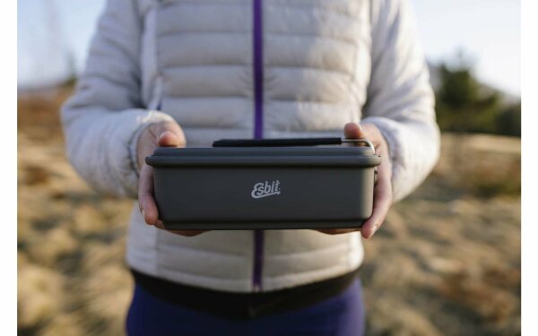 Set de cuisson Esbit - pour le petit repas entre deux repas Réchaud compact à combustible sec avec lequel vous pouvez préparer de petits repas ou une boisson chaude. Facile à manipuler et avec environ 375g, un vrai poids plume. Le pot contient environ 1100ml, la livraison comprend également le couvercle ainsi que le support, qui peut être rangé dans le pot pour gagner de la place. La marmite dispose d'un affichage du volume en Oz et en litres. La poignée en acier inoxydable peut être repliée pour gagner de la place. Couvercle avec suspension pratique. La forme plate et rectangulaire est idéale pour le rangement dans les bagages.