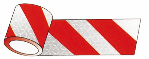 - Hochreflektierend R2 - rechts abweisend rot/weiss - DIN 30710 - 3M 823 schlagfeste, metallisierte, flexilble, retro-reflektive Folie - Besonders geeignet auf die Anwendung auf planen und gebogenen Oberflächen - Wetterbeständig bis zu 3 Jahre rechts abweisend, R2 hochreflektierend