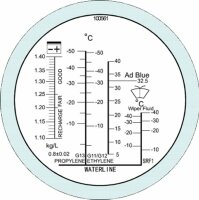 Refraktometer für diverse Flüssigkeiten wie Frostschutz, Akku-/Batteriesäure, AdBlue & Scheibenreiniger Aethylenglykol: -50°C...0°C Propylenglykol: -50°C...0°C Batteriesäuredichte: 1.10...1.4sg Scheibenreiniger: -40°C...0°C AdBlue: 5°C...40°C Lieferung im Etui AdBlue, Aethylen- & Propylenglykol, Batt.säure