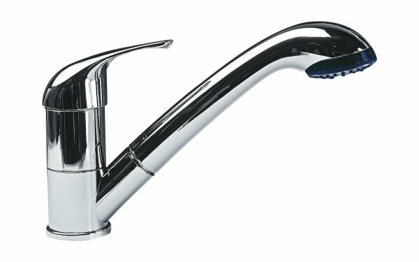 Einhebelmischer KERAMIK KAMA mit herausziehbarer Brause JULIA (Berger Nummer 333440) Kunststoffarmatur mit Keramikkartusche. Mikroschalter wasserdicht. Mit Metall Duschschlauch. Anschluss: Flexibel für Schlauch 10/12 mm.