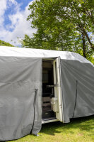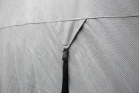 • Dach aus Tyvek ähnlichem atmungsaktiven Material in Weiß für optimalen UV-Schutz
