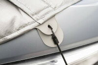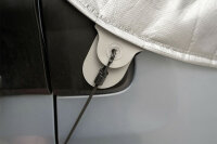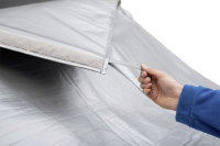 Comme d'habitude avec les tapis isolants extérieurs HINDERMANN, le volet frontal peut également être ouvert avec la version CLASSIC. Lors du montage du tapis, il est recommandé de laisser les portes de la cabine légèrement ouvertes afin de pouvoir placer les poches de porte ajustables. Le tapis isolant a une prise sûre et s'adapte parfaitement.