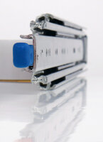 Die heavy duty Vollauszugsschiene mit mechanischer Arretierung (im eingefahrenen Zustand) ist vielseitig einsetzbar und überzeugt durch hohe Belastbarkeit.
