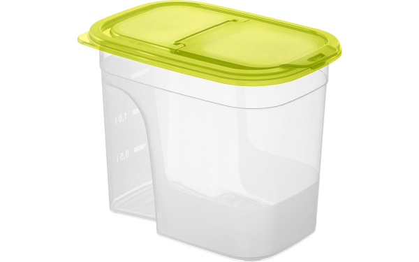 Die neuen Cerealienbehälter Sunshine bieten das perfekte Fassungsvermögen für Cornflakes, Müsli und andere Cerealien. Dank der praktischen Schüttöffnung lassen sich diese bequem dosieren, ohne immer den ganzen Deckel abnehmen zu müssen. Der Deckel schliesst geruchsdicht auf dem Behälter mit der ergonomischen Grifflösung und der integrierten Literskala. Durch das transparente Unterteil lässt sich der Inhalt immer gut erkennen. Krümel im Küchenregal oder geöffnete Wurstverpackungen finden Sie unhygienisch? Die praktischen Aufbewahrungsdosen der Linie SUNSHINE helfen Ihnen, Ihre Lebensmittelvorräte übersichtlich und gut verschlossen zu verwahren - ob im Kühlschrank oder in der Vorratskammer. Cerealien sind bei groß und Klein beliebt - doch wohin mit der angebrochenen Verpackung? Offen aufbewahrte Lebensmittel büssen nicht nur an Geschmack und Frische ein, sie können im schlimmsten Fall auch Lebensmittelmotten zum Opfer fallen. In der Schüttdose SUNSHINE sind Ihre Frühstücksflocken hingegen immer optimal geschützt und bewahren ihren Biss und ihr Aroma. Auch Trockenvorräte wie Mehl, Zucker oder Nudeln bleiben in dem verschließbaren Behälter lange frisch. Das transparente Material sowie die integrierte Literskala erleichtern Ihnen den Überblick über Ihre Vorräte und helfen Ihnen so, Engpässe oder überflüssige Einkäufe zu vermeiden. Dank der ergonomischen Grifflösung lässt sich der Behälter bequem mit einer Hand ergreifen. Auch die Dosierung wird mithilfe der Schüttöffnung zum Kinderspiel - Sie brauchen den Deckel nicht jedes Mal abzunehmen und Ihre Flocken landen zielgenau in der Schüssel. Die Schüttdose SUNSHINE ist aus transparentem Kunststoff gefertigt und verfügt über eine praktische Literskala. Das verwendete Material ist spülmaschinengeeignet und selbstverständlich frei von bedenklichen Stoffen wie BPA (Bisphenol A). Dank des dicht schließenden Deckels bleiben Trockenvorräte lange frisch und sind vor Ungeziefer geschützt. Die spezielle Form des Unterteils erleichtert die Handhabung des Behälters, zur einfacheren Entnahme ist der Deckel ausserdem mit einer Schüttöffnung versehen. Erhältlich ist die Aufbewahrungsdose in den Größen 2,2 und 4,1 Liter. Mehrere Dosen ergeben ein praktisches, pflegeleichtes Aufbewahrungssystem! Details transparenter Behälter Deckel mit praktischer Schüttöffnung ergonomische Grifflösung integrierte Literskala robuste Markenqualität
