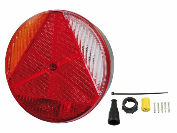- links - sehr kompakt - mit Rückfahrlicht und Dreieckrückstrahler - Stecker-Set inbegriffen ø 162x60mm, links
