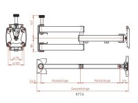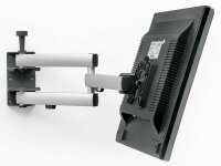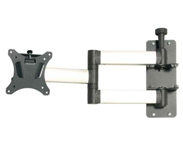 This TV mount has a large swivel range and locking bolts. It is very light, high quality workmanship, offers a noble design and a large carrying capacity of up to 10 kg. A quick release plate allows for quick removal of the TFT. The holder still works even when the TFT is hanging very high. The double-jointed arm has an installation height of 65 mm and an arm length of 350 mm. The extension features 780 mm.