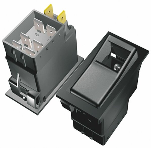 Schalterform: Wipptastenschalter Funktion mechanisch: tastend Funktion elektrisch: Umschalter Spannung: 12 Volt Belastbarkeit: 10 Ampère Einbauloch: rechteckig Länge: 44 mm Breite / Tiefe: 22 mm Beleuchtung: Ja Wasserdicht: Nein Zusatzinformation: Polwechsel: Ausgang: 3+4 (+/- Polumkehrung) Eingang-Plus: 1+8 (Brücke machen) Eingang-Minus: 7+2 (Brücke machen) mit Armaturenbeleuchtung, Doppelkontakt, ohne Emblem SWF-No: 511 056, Hella 6GM004570221/227/231 44x22mm / 1 > 0 < 2 / Bel. 12V (A)