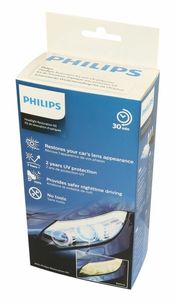 Dieses Paket versorgt Sie mit allem, was Sie zum Reinigen zweier Autoscheinwerfer benötigen: - 1 Flasche Vorbehandlungsmittel auf Wasserbasis (29,5 ml) - 1 Flasche Reinigungs-/Poliermittel (29,5 ml) - 1 Flasche Glanzmittel (29,5 ml) - 1 Stück Sandpapier (600, grob) - 1 Stück Sandpapier (1500, mittel) - 1 Stück Sandpapier (2000, fein) - 10 Papiertücher - 1 Paar Handschuhe (Einheitsgröße) Entfernt altersbedingte Verfärbungen von Scheinwerfern