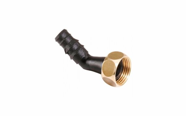 Schlauchtülle Aus Vollkunststoff zur Serie Exclusiv. Natürlich auch universell einsetzbar. 45°, Gewinde 3/8". Schlauchanschluß 8/10 mm.