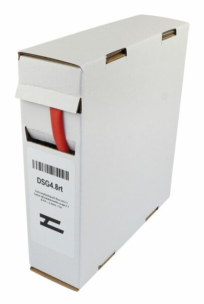 *ROT*, Temp: -55°C bis + 105°C selbstverlöschend Schrumpfrate 2:1 UV-beständig ø 4.8 -> 2.4mm, 11m, rot 3/16"