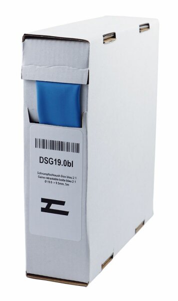 *BLAU*, Temp: -55°C bis + 105°C selbstverlöschend Schrumpfrate 2:1 UV-beständig ø 19.0 -> 9.5mm, 5m, blau 3/4"