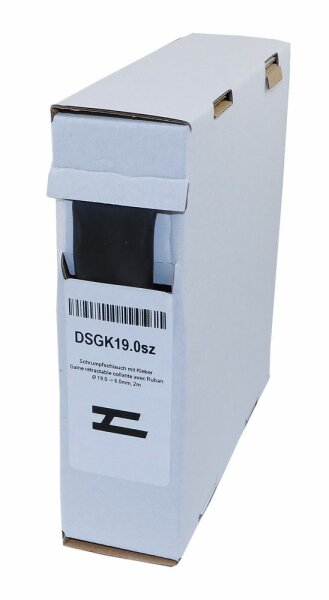 Temp: -55°C bis + 105°C selbstverlöschend Schrumpfrate 3:1 UV-beständig ø 19.0 -> 6.0mm, 2.0m mit Kleber