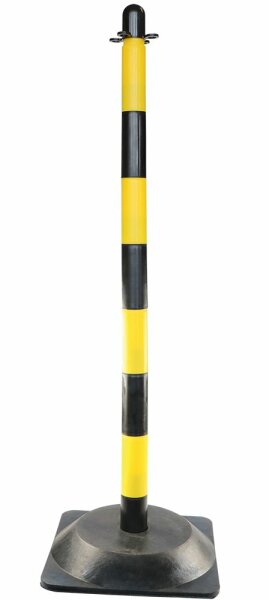 Gut sichtbarer gelb/schwarz/gelber Pfosten mit Sockel zur Absperrung bei Arbeiten an Hybrid- oder Elektrofahrzeugen. für Arbeiten an Hybrid- und Elektrofahrzeugen