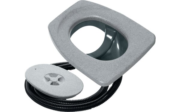Einsatz zur Urinseparation Privy 500, grau Isoliersitz, grau Siphon (aus Lieferkarton hergestellt) Schrauben und Dübel für die Befestigung des Einsatzes 2,5 m Schlauch zur Ableitung des Urins