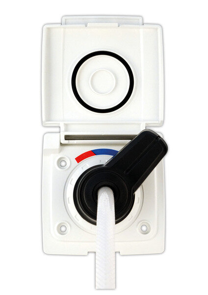 Temperatur durch Drehen des Anschluss-Stücks regelbar, abtrennbarer Duschschlauch (200 cm). Abdeckung rastet in offener und geschlossener Stellung ein.Weitere Spezifikationen:Anschlusstüllen: 10 mmHebel: UV-beständiges LM T112