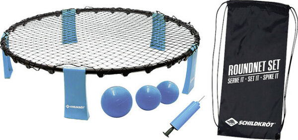Roundnet est le nouveau sport fun ultime pour jeunes et moins jeunes. Deux équipes de deux joueurs s'affrontent. Tous sont répartis équitablement autour du filet. Pour servir, le ballon est frappé du plat de la main sur le filet, de sorte qu'il vole dans le camp adverse. L'équipe adverse peut alors se passer le ballon jusqu'à trois fois avant de le renvoyer dans le filet. L'objectif est que le ballon ainsi frappé ne soit pas atteint par l'équipe adverse, dans la mesure du possible. Après le service, chaque joueur peut se déplacer librement autour du filet. C'est ce qui rend le jeu si rapide. On essaie de faire sortir l'adversaire de sa réserve par des passes courtes et longues, des attaques simulées et d'autres astuces. Si ce dernier ne parvient pas à renvoyer le ballon et que celui-ci tombe par terre, l'équipe reçoit 1 point. Dès qu'un joueur est gêné, il reçoit également 1 point. Le premier joueur à atteindre 21 points et à mener de 2 points a gagné le match. Le set contient tout ce qu'il faut pour commencer immédiatement un match de roundnet : filet de roundnet complet (Ø 90cm, env. 20cm de haut), 1 ballon d'entraînement (Ø11cm), 2 ballons de compétition (Ø9cm), pompe à balle avec aiguille ainsi qu'un sac en filet pour le rangement et le transport. Veuillez noter que l'aiguille de la pompe se trouve dans la poignée. Veuillez gonfler les balles à 0,5 bar maximum. Le nouveau sport fun ultime pour jeunes et moins jeunes. Le roundnet peut être joué avec des amis et la famille à la plage, dans un parc ou même à l'intérieur. Ce jeu rapide enthousiasme tout le monde et on trouve rapidement des coéquipiers intéressés. À propos de Schildkröt : La marque allemande Schildkröt, vieille de plus de 100 ans, est considérée comme l'inventeur de la balle de ping-pong. Aujourd'hui, Schildkröt propose, outre le tennis de table, une très vaste collection de sports fun, de sports sur roulettes et de fitness et est considéré comme le leader du marché dans certains domaines. Le développement des produits se fait sans exception en Allemagne. Les sites de production dans le monde entier sont strictement contrôlés et répondent aux normes sociales les plus élevées.