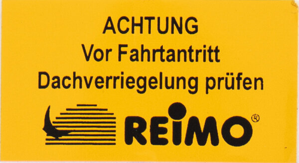 Sicherheits-Aufkleber über die Prüfung der Dachverriegelung z.B. für Aufstelldächer:"ACHTUNG: Vor Fahrtantritt Dachverriegelung prüfen."