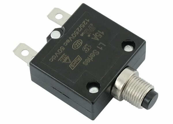 - max. 50 VDC, 250 VAC - 2x 6.3 mm Flachsteckanschlüsse - Gewindelänge: 8.6 mm - mit manuellem Rücksteller 35 x 14.6 x 59 mm, 12 - 50 VDC, 250 VAC