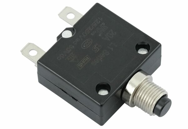 - max. 50 VDC, 250 VAC - 2x 6.3 mm Flachsteckanschlüsse - Gewindelänge: 8.6 mm - mit manuellem Rücksteller 35 x 14.6 x 59 mm, 12 - 50 VDC, 250 VAC