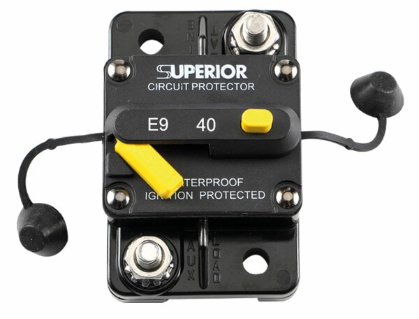 - max. 42 V - wasserfest - 2x 1/4“-28-UNC Anschlussbolzen - mit manuellem Auslöser 75 x 49 x 45 mm, 12 - 42 V