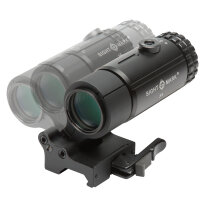 Das Sightmark T-3 LQD wurde konstruiert, um direkt hinter einem Reflexvisier oder Rotpunktvisier montiert zu werden. Es ermöglicht schnell und einfach das Visierbild 3x zu vergrössern. Sein Einsatz ist ideal bis Entfernungen von max. 100m. Wenn die Situation plötzlich kurze Schussentfernungen erfordert, ermöglich die Flip-to-Side Technik, den Booster blitzschnell zur Seite zu klappen. Der Gehäusekörper ist aus einer hochwertigen Flugzeugaluminiumlegierung hergestellt. Die hervorragende Lichtdurchlässigkeit und Helligkeit wird durch die mehrfach beschichteten Linsen erzielt. Kompatibel mit quasi allen auf dem Markt befindlichen Reddots. Durch die Seiten- und Höhenverstellung kann der Booster an die Position des davor montierten Rotpunktes angepasst werden.