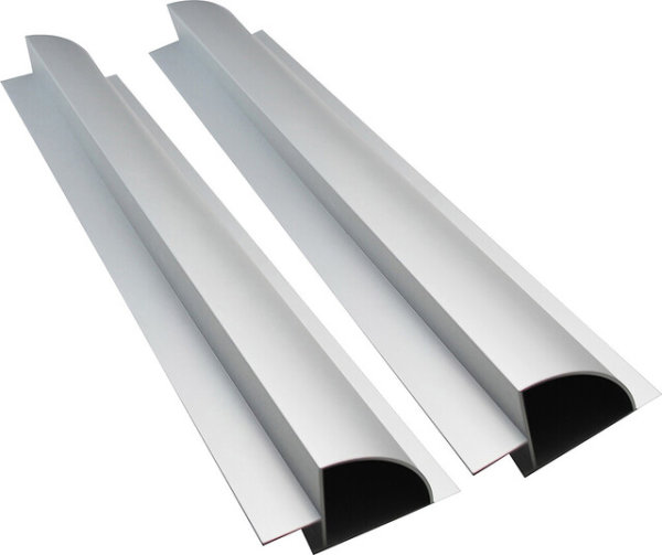 Two aluminium spoilers for mounting solar panels with a side length of 41 cm, anodised, black, salt-water-resistant alloy (EN AW-6063), wall thickness 1.9 mm.
