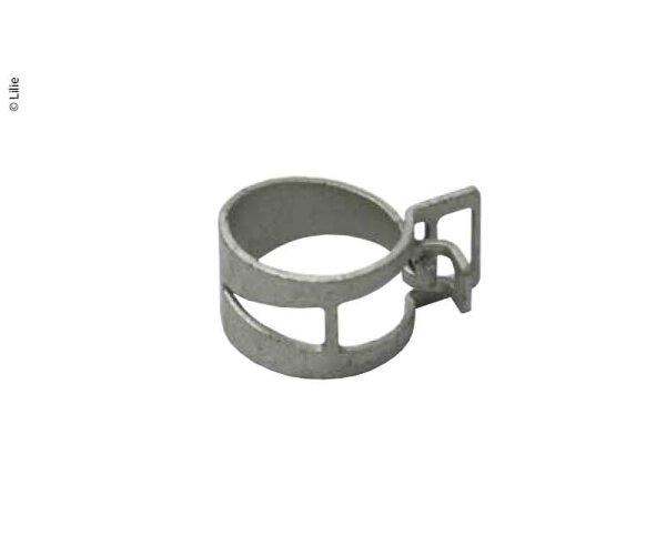 Made of spring steel, C75S, corrosion protected, closing force 200-250 Nm . Ideally matched to Lilie drinking water hoses with 15mm O.D. Toolless assembly due to pretensioned SChelle. The clamp closes by simple unlocking.