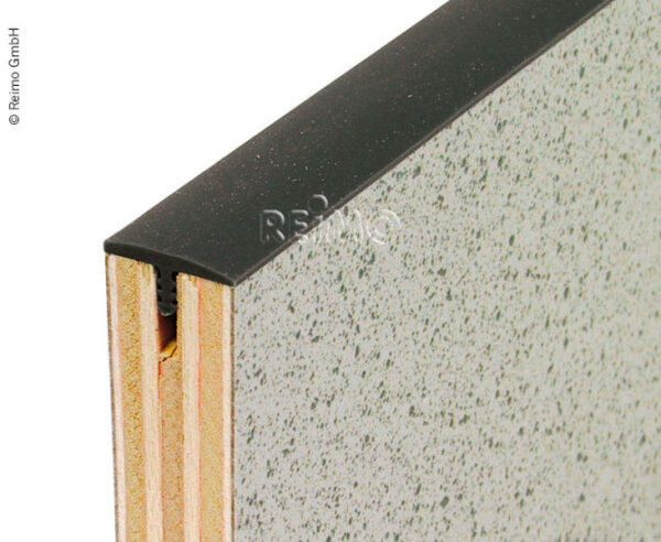 Der T-Umleimer Standard 15 mm schützt die Holzkante und sorgt für hohe Stabilität. Wird in die gefräste Nut eingeschlagen.
