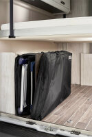 Die gepolsterte HINDERMANN Stauraumtasche PREMIUM besitzt gegenüber der Standardversion zusätzlich zwei gepolsterte Zwischenwände. So sind Ihre Campingmöbel immer griffbereit und über Nacht oder für die Weiterreise sicher im Fahrzeug an ihrem Stammplatz untergebracht. Dank der cleveren Ausstattung mit Laschen und LOXX-Druckknöpfen lässt sich die HINDERMANN Stauraumtasche in der Heckgarage befestigen oder flexibel transportieren.