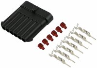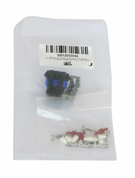 Stecker-Set Delphi Metri-Pack 150, 6polig bestehend aus: 1x Buchsengehäuse, gedichtet, schwarz 7x Buchsenkontakte 7x Gummidichtungen 1x Zugentlastung 3x Blindstopfen 6-polig