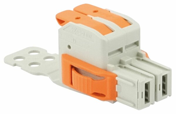 - 2er-Leiterklemme mit Betätigungshebeln WAGO CAGE CLAMP® - versilberte Kontakte - Klemmfederwerkstoff Chromnickelfederstahl - mit Befestigungsmöglichkeit/Kabelzugentlastung - für Kabel mit oder ohne Aderendhülsen - Temperaturbereich von -60° C bis +120° C - Litzenkabel bis 25 mm2 - mit Aderendhülsen bis 16 mm2 33.6 x 29.1 x 89.8 mm