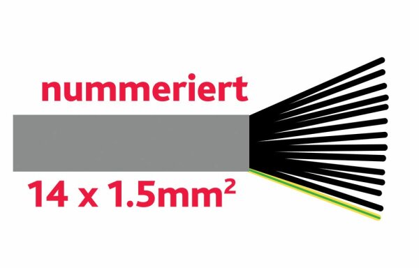 Adern schwarz, nummeriert + 1 Schutzleiter grün/gelb