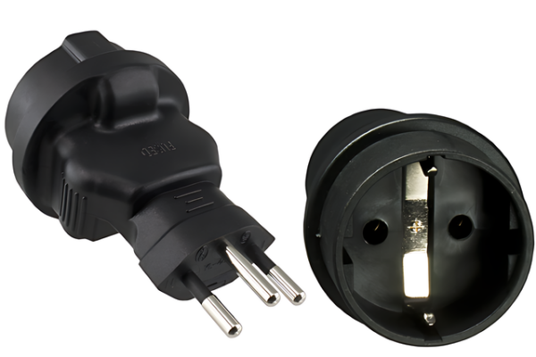 Stromadapter Schweiz DINIC CEE 7/3 auf CHE Typ J schwarz