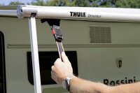 Spannen und sichern Sie Ihre Markise, Ihr Vorzelt oder Ihr Sonnensegel mit optimal mit der neuen, verbesserten universal Rathgeber Sturmleine ab. Die neue universal Rathgeber Sturmleine wird schon beim Aufbau leicht auf Zug gebracht, dadurch reduziert sich der maximale Federweg.