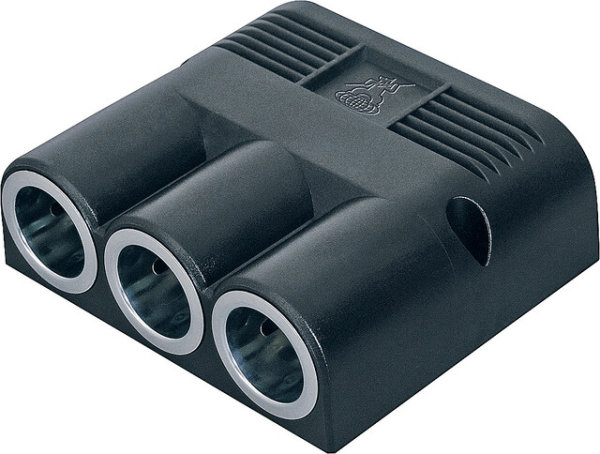 Surface-mounted triple socket with an inner diameter of 21 mm, max. 20 A with a cable cross-section of 2.5 mm², 16 A with 1.5 mm².