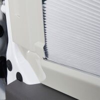 Ce store enrouleur occultant robuste a été spécialement conçu pour les modèles Ford Transit V363 Facelift lancés en juin 2019. Il peut être ajusté sur trois positions de bas en haut et offre une combinaison parfaite d'intimité, d'ombre et d'isolation thermique. Son matériau de revêtement en aluminium retient efficacement la chaleur ou le froid. Le montage se fait en quelques minutes, avec un résultat impeccable. Le post-équipement est identique à l'original qui a été installé directement à l'usine.