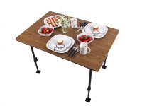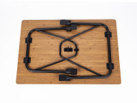 The new lightweight Camp4 - camping table TJÖRN scores with a weatherproof table top in bamboo decor. The large plate feet prevent sinking and provide a stable stand. The matt black lacquered table legs are infinitely height-adjustable from 51-71 cm with a handle. The table has an above-average load capacity of 50 kg and offers space for 2-4 people.
