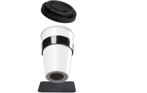 TO-GO-CUP silwy porcelain 1 cup+1 pad+1 lid col. white incl. coaster BLACK