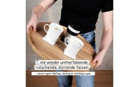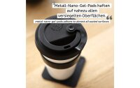 Stable TO-GO-CUP made of porcelain. The metallic nano gel pads are washable, removable without residue and reusable. Store upright in the cupboard with the silwy pads or the silwy metal mat.
