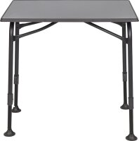 La table de camping AIRCOLITE BLACKEDITION est dotée d'un cadre noir. Le cadre noir permet une meilleure association avec les chaises de la série Performa. Le plateau de table extrêmement robuste est absolument résistant à la chaleur et à l’eau et, également aux rayures. Les quatre pieds réglables en hauteur sont également dotés d’un revêtement anti-rayures de haute qualité.