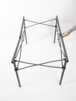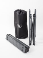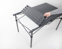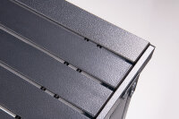 Table à roulettes stable en aluminium pour 4-6 personnes avec plateau anthracite et piètement en aluminium. Il est également possible de s'asseoir confortablement sur les côtés. Surface de la table : 119x70 cm.