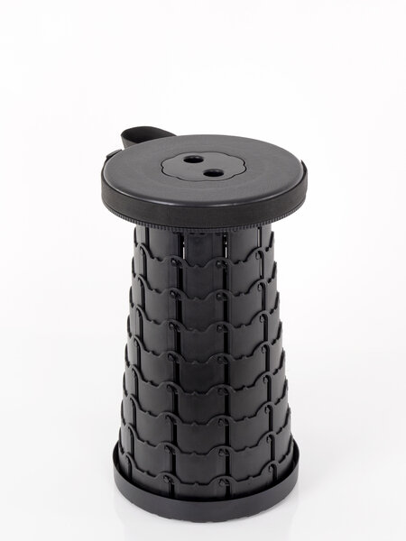 Le tabouret de camping Bodo, réglable en hauteur, très petit à emballer et extrêmement léger, est encore plus facile à transporter grâce à sa dragonne. Une encoche supplémentaire pour les doigts permet d'ouvrir et de fermer facilement et rapidement le tabouret.